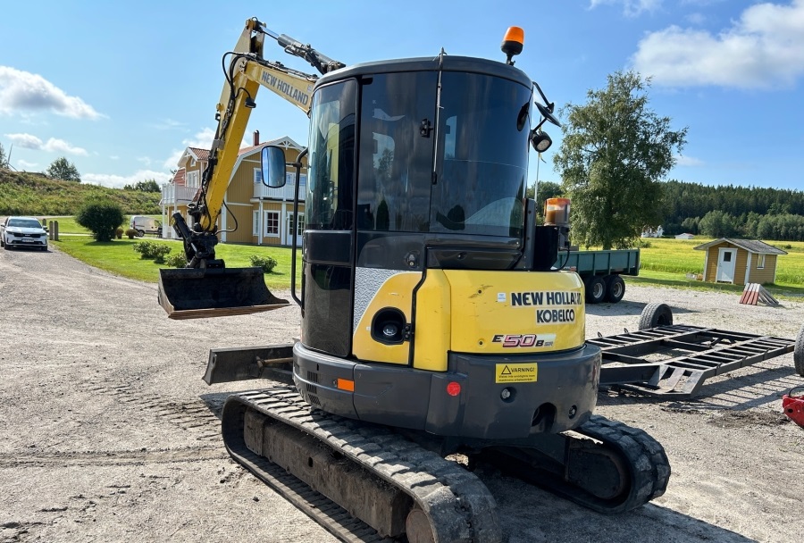 Minibagger New Holland E50B SR (2012) – 5,1 t + Anhänger – Gebraucht