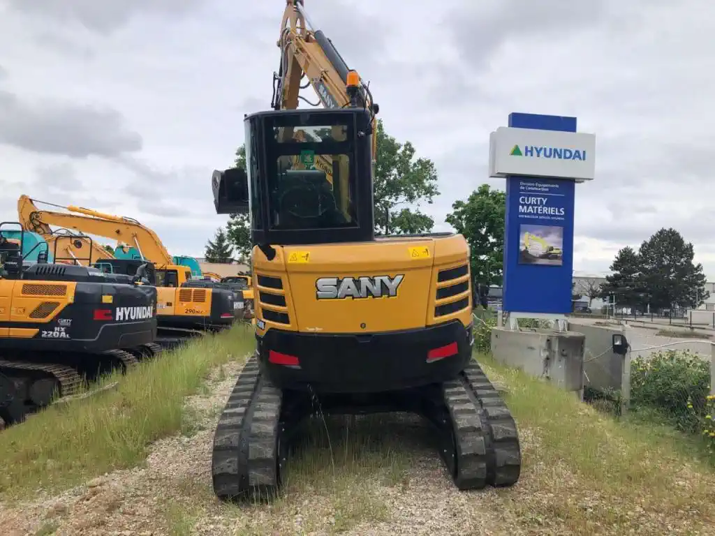 Neumaschine: Minibagger Technische Daten Typ: Minibagger Marke: Sany Modell: SY50U Baujahr: 2023 Gewicht: 5.000 kg (50 Doppelzentner) Zustand: Neuwertig / Neue Maschine Beschreibung Neue Maschine mit Kabine, Gummiketten, Planierschild, doppeltwirkender proportionaler Hammerleitung (BRH), doppeltwirkender proportionaler Drehleitung, mechanischem Schnellwechsler und 3 Tieflöffeln.